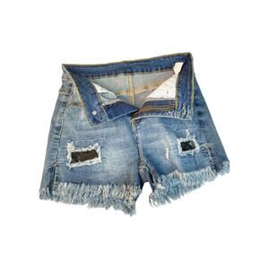 PUDR JEANS Distressed Lace Denim Bootie Shorts Blue Black Juniors Size S