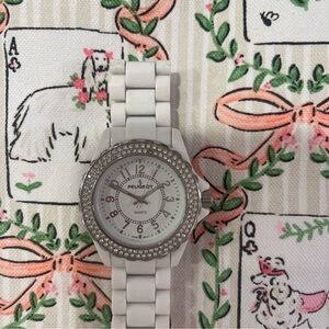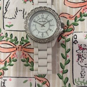 PUEGEOT WHITE QUARTZ WATCH!! Pretty and versatile . Needs battery price reflects this! Great condition!!!!