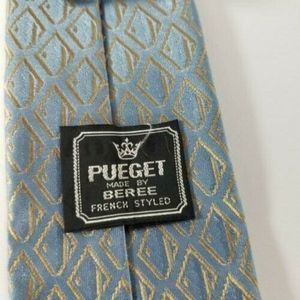 PUEGET BY BEREE Vintage French Styled Tie Blue and Gold. Condition is Pre-owned.