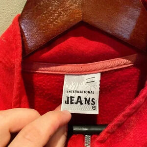 Size L. Puerto Vallarta red quarter zip pull over sweater. Fun colorful embroidery. Cozy! Excellent used condition. Reasonable offers welcome!