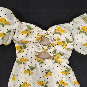 PUFF SLEEVE LEMON DOT ADORABLE DRESS w CUTOUTS & TIES AT BUST SIZE S Tagged JR 3