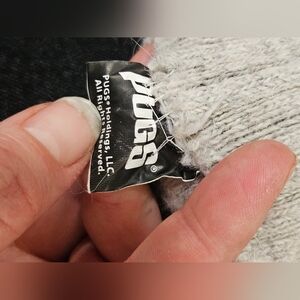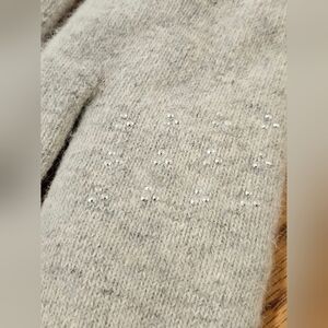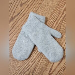 These PUGS mittens gloves are made of a cozy angora wool blend in a stylish silver grey color. They are designed in a mitten style with a wrist length, perfect for keeping your hands warm during the winter and spring seasons. The size is medium, making them suitable for women.