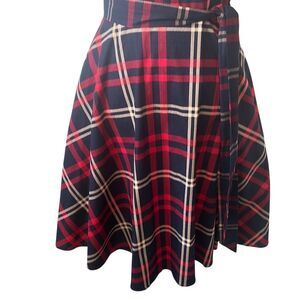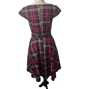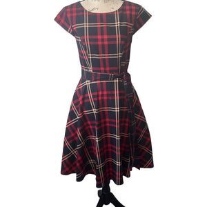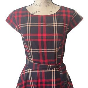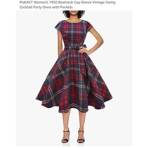 PUKAVT Plaid Red Blue 1950’s Boat Neck Retro Flair Dress M