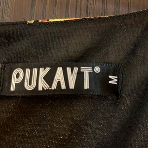 PUKAVT capped black dress with large sunflowers. Size Medium.
