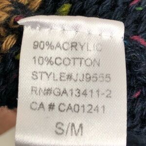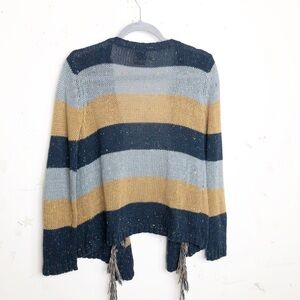 Pull & Bear striped speckled knit open closure fringe cardigan, tan and navy blue and gray waterfall closure 90% acrylic 10% cotton