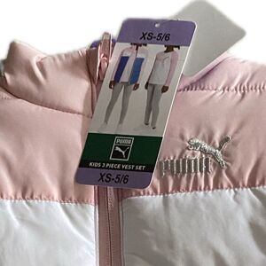 PUMA 3pc Girl's Set: Vest, Shirt & Leggings ~ Pink White Gray X-Small 5/6 NWT