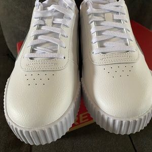 White pumas new with a nice cushion insole has silver puma sign New with original box