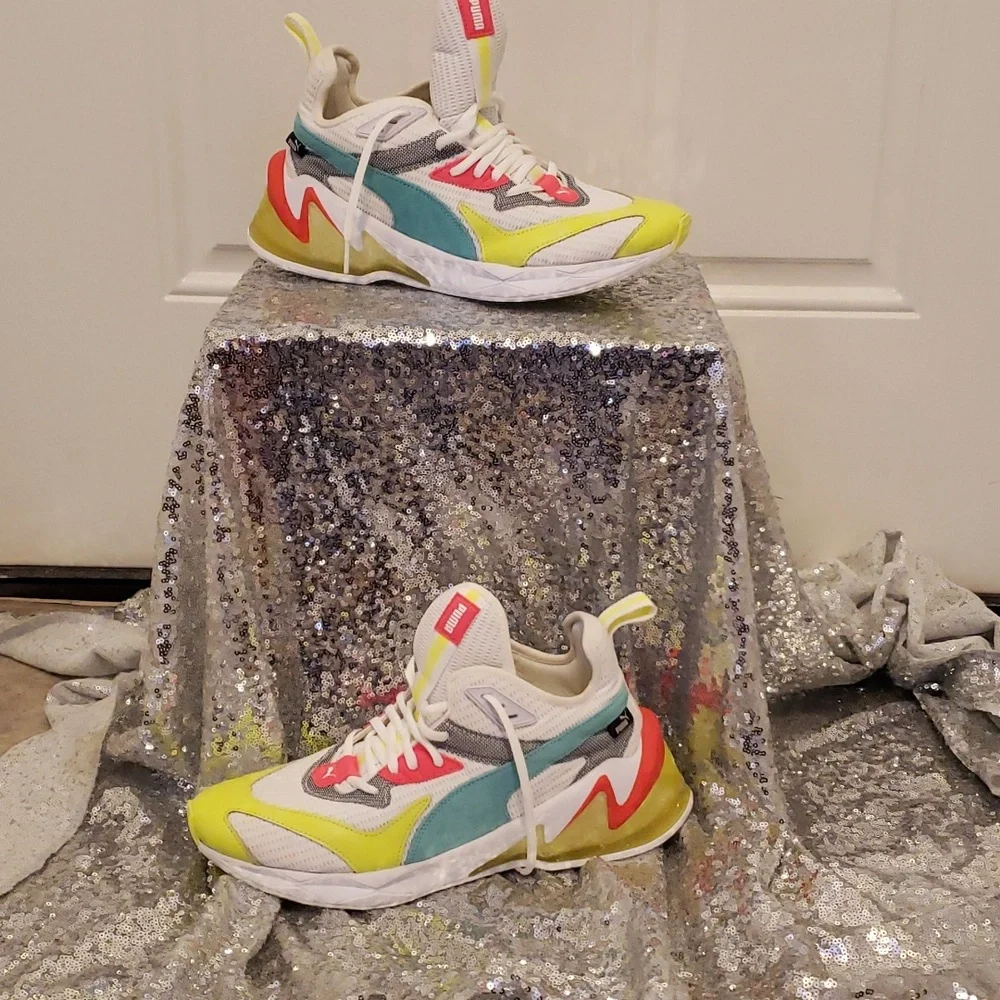 brand new without the box, puma sneakers, neon yello& orange, aqua blue