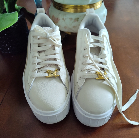 Stylish cream sneakers perfect for casual outings. Features a comfortable fit and trendy design like new 9.5