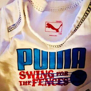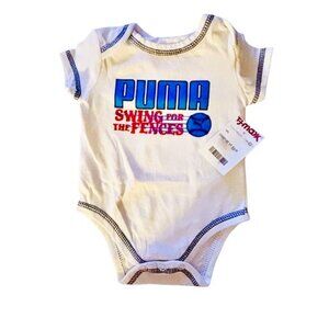 PUMA Baby Bodysuit 3-6 Months Red White Blue Baseball Logo Onesie NWT