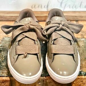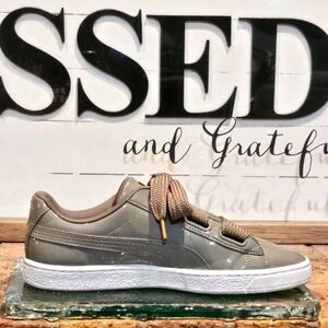 PUMA Basket Heart Patent Silver/Grey Wmns 10.6 #363073-12