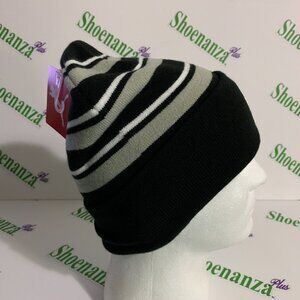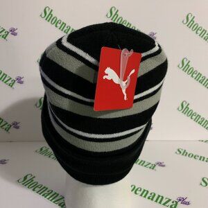PUMA Beanie P Stripe Hat Cuffed Knit Cap Enjoy Golf Black White Gray OSFM