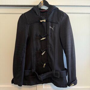 PUMA Black Jacket – Size Small Hooded Duffle Coat with Belt & Toggle Closure,