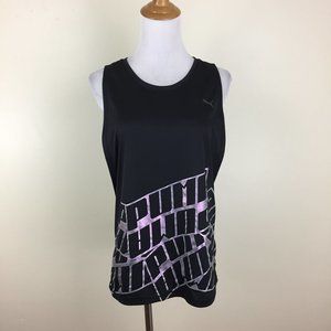 PUMA Black Silver Glittery Large Logo Print Wide Armhole DRY CELL Tank Top