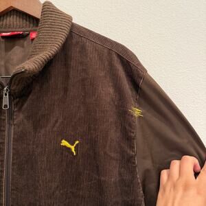 PUMA Brown Corduroy Track Jacket Men XXL Zip Up Ribbed Collar Logo VTG Y2K Retro