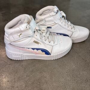 PUMA Carina 2.0 Mid High top white sneakers Youth Girls size 4 shoes