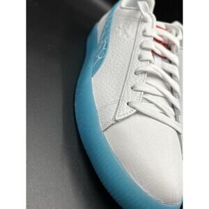 The PUMA Clyde x Kool-Aid Brick Walls Men's sneakers in blue and white are a rare find for those looking to add a unique and colorful twist to their footwear collection. With premium leather and tumbled leather upper material, these lace-up sneakers feature a colorblock pattern with the iconic Clyde, Kool-Aid, and 90's character details. Designed for athletic activities like basketball, these 2021 releases from PUMA have a rubber outsole and standard shoe width, making them suitable for both activewear and casual occasions. The PUMA Clyde silhouette and vibrant design make these sneakers a standout choice for sneaker enthusiasts.