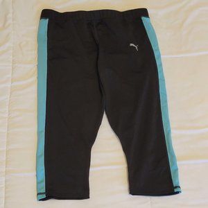 PUMA Cool Cell Black With Turq Stripe Crop Mesh Active Capri Leggings Sz: M