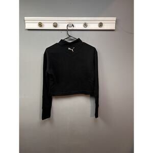PUMA Cropped Sweatshirt Womens Size XS Black Gold Graphic Mock Neck Athletic