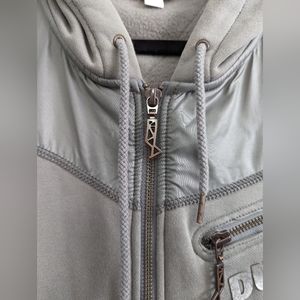 Excellent condition! This is fitted and will fit a large size as well, soft and comfortable with fleece lining inside, metal logo zipper pulls, 2 front pockets for your hands, zippered pocket on the chest, shell 1: 80% cotton, 20% polyester, shell 2: 100% nylon, PVC free. Approximate measurements in the photos. Comes from a pet and smoke free home. Please message me with any questions.