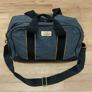 PUMA Duffle Bag Black and Grey with Gold Hardware Gym Workout