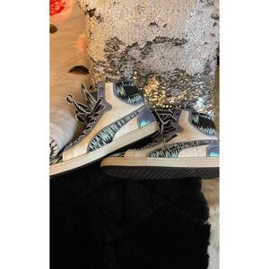 Good condition only worn two times has mermaid or unicorn white colors great for Halloween costumes at fashion sneakers Kawaii cute Korean K-pop has a Y2K 90s look to them similar look to Nike Jordans 1’s