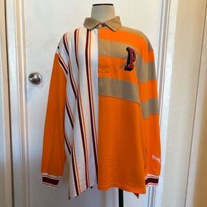 PUMA Freedom Rugby Vibrant Orange Tan White Burgundy Relaxed Fit Shirt $95 NWT M