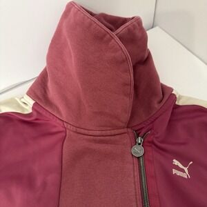 PUMA Full Off-Center Zip Women Sz M-Fuchsia -Activewear-Foldable Collar-Logos