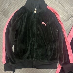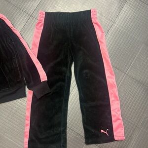 PUMA GIRLS SIZE 4 BLACK AND PINK TRACK SUIT JOGGING VELOUR