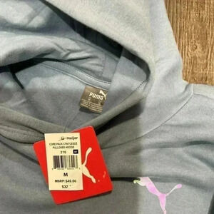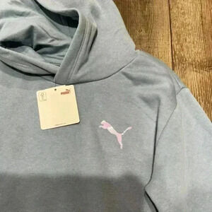 PUMA Girls' Core Logo Fleece Pullover Hoodie Blue Size Medium