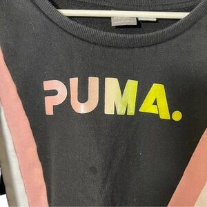 PUMA Girls Pullover Sweatshirt Size Large 12/14 Colorblock Trim Black Pink Green