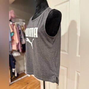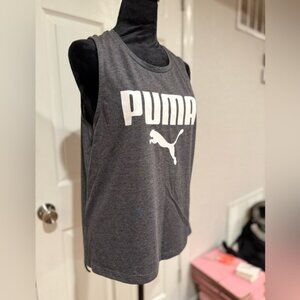PUMA Gray Sleeveless Logo Tank Top, Size Medium