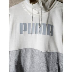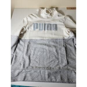 PUMA Gray White Cowl Neck Active Sporty Workout Casual Pullover Hoodie SZ M