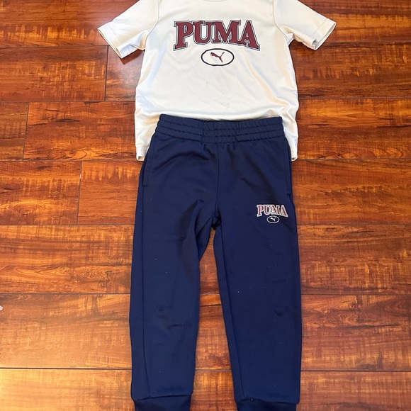 Stylish PUMA joggers and matching shirt for kids. Perfect for play and comfort. Features iconic logo.