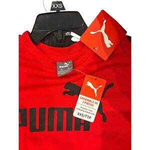 The PUMA Kids' Tech Fleece Jogger Set is a 3-piece outfit in size XXS, featuring a solid pattern in grey, black, and red colors. This casual outfit is made from machine washable fleece fabric, perfect for the winter, fall, and spring seasons. The set includes a pair of pants in a stylish design, suitable for boys' everyday wear. Made by the renowned brand PUMA, this outfit is a fashionable choice for young boys looking for comfort and style. BRAND NEW