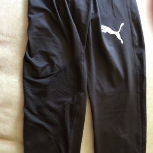 PUMA BLACK CROPPED LOGO LEGGINGS . SIZE: XL