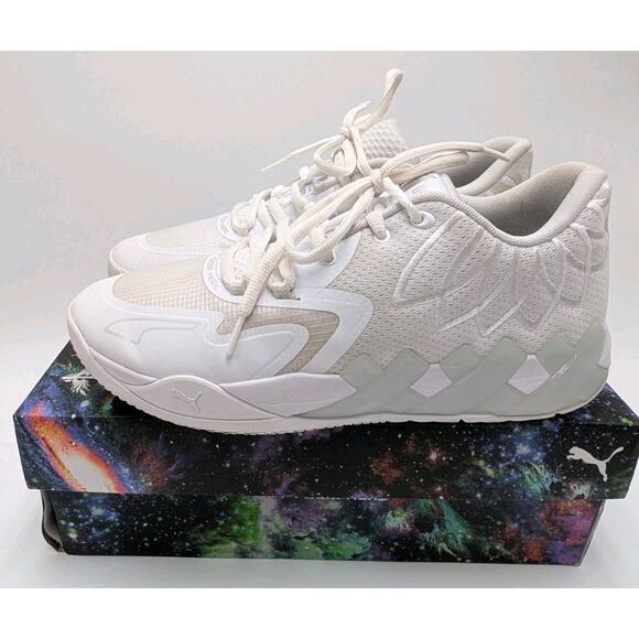 PUMA MB.01 Lo Team Colors - Triple White - Size 10.5 - Pure Money- Metallic Melo