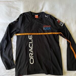 Stylish black long sleeve tee with Oracle USA branding. Comfortable and sleek design. Perfect for casual wear.