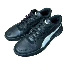 Introducing the PUMA Men's DC Past Sneaker, a stylish and comfortable athletic shoe for men. This shoe features a black and white color scheme with a synthetic upper material, perfect for any casual or athletic outfit. The shoe is available in UK shoe size 9.5, US shoe size 10.5, and EU shoe size 44, with a standard shoe width.
