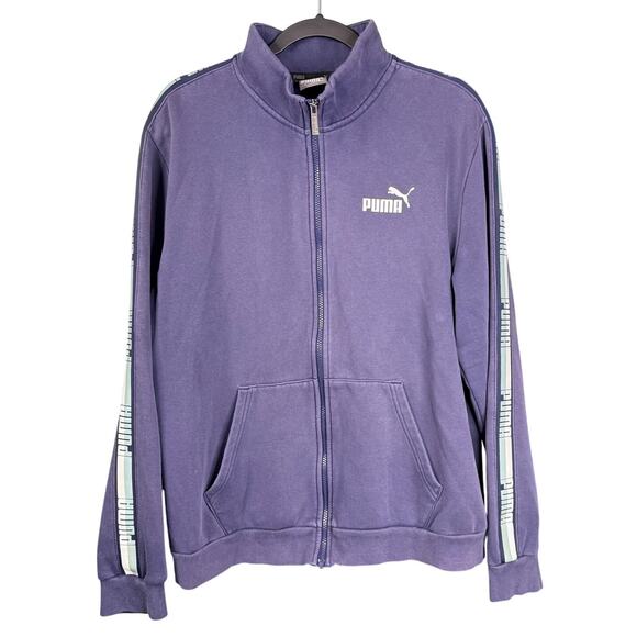 PUMA Men's Size Large Navy Blue Full Zip Cotton Blend Track Jacket Sweatshirt.