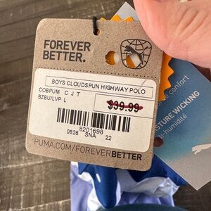PUMA NWT BOYS Cloudspun Highway Polo Navy/Lavender Moisture Wicking Size L