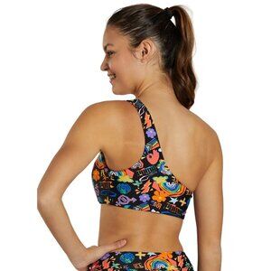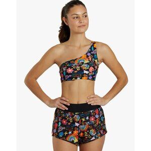 Vibrant and stylish, this PUMA swim top features a multicolor rainbow design perfect for showing pride. The one-strap construction offers a modern look, while providing comfort and support for your swim activities. Brand new, without tags.