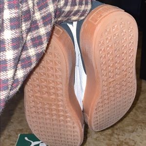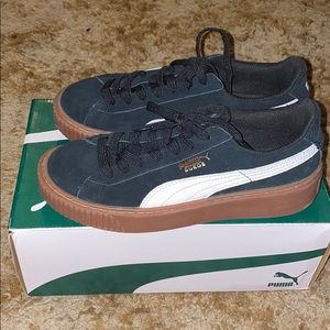 black and white puma platforms with gum sole, worn 3 times, no creases, tears or scratches. SIZE 6