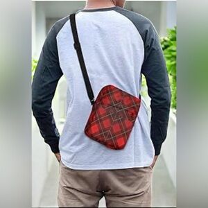 This Puma messenger bag combines style and practicality with its bold red and black plaid pattern. Crafted from durable materials, it features an adjustable shoulder strap for comfortable carrying. Ideal for everyday use, it stands out with its eye-catching design.