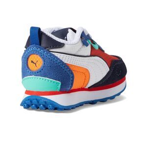 Give little feet retro runner style with easy on/off comfort. The PUMA Rider Future Vintage for toddlers features an alternate closure (hook-and-loop strap + elastic laces) for a secure fit without tying. A lightweight cushioned midsole keeps steps comfy, while the rubber outsole adds grip for playground adventures. Mixed-material upper with classic PUMA Formstrip delivers that throwback look.