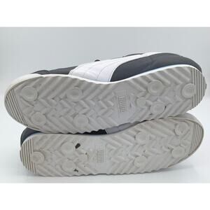 The PUMA Roma Men's Shoes in size 10 are a stylish and comfortable option for casual wear. With a navy blue color and light blue trim, these sneakers feature a low top design with a lace-up closure. Made with leather uppers and a foam insole, these shoes provide a comfortable fit for all-day wear. The rubber outsole ensures durability and traction, making them ideal for walking and everyday activities. The PUMA Roma model is a classic athletic style that is both trendy and practical for any season.