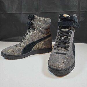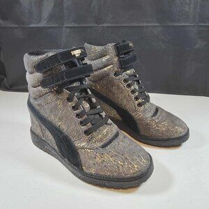 PUMA SKY WEDGE HIGH TOP SNEAKERS SHOES GOLD GRAY IRIDESCENT WOMENS SIZE 7