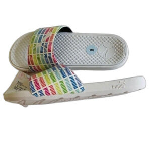 PUMA SLIDES Women’s size 9 Rainbow color/ white Comfortable NEW