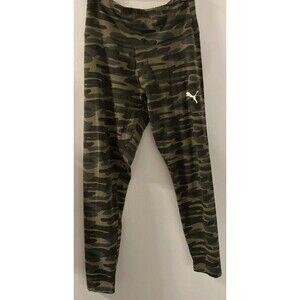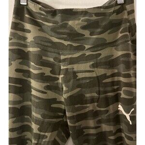 The PUMA Size Medium Women's Logo Leggings in camouflage pattern are a stylish and functional choice for active women. These compression leggings feature an elastic waist for comfort and stretch for ease of movement. Perfect for various activities such as gym training, yoga, and running, these leggings are machine washable and made of polyester material. Fabric tag missing. PUMA tag is on , it is ripped. The slim fit design and skinny leg style provide a flattering silhouette, while the PUMA logo adds a touch of sporty flair to the versatile camo pattern. Ideal for all seasons, these leggings are a must-have for any athletic wardrobe. Length 35 Inseam 25 Rise 8 Waist 28. Great PUMA leggings to work out in. Thank you for looking!