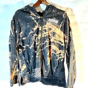 Thank you for looking at this one of a kind PUMA Sweatshirt Hoodie Size Small Grunge Zip Up Acid Wash Text Hooded Unisex
